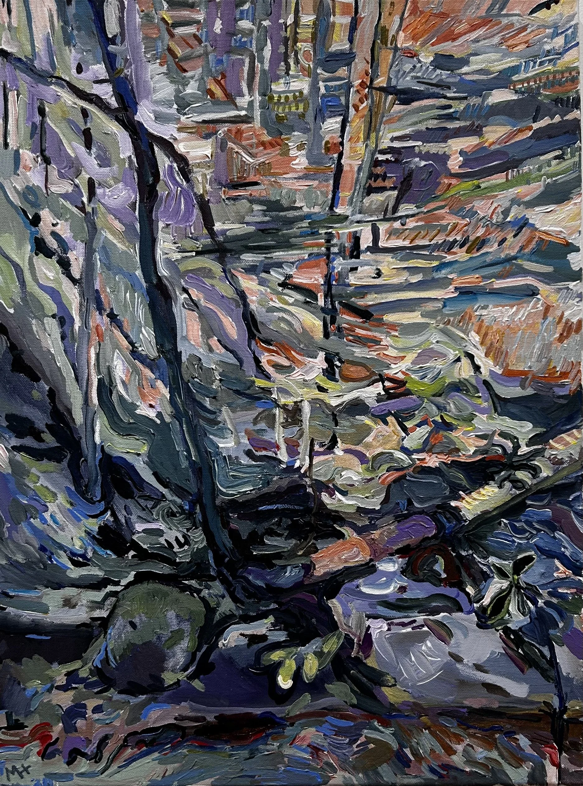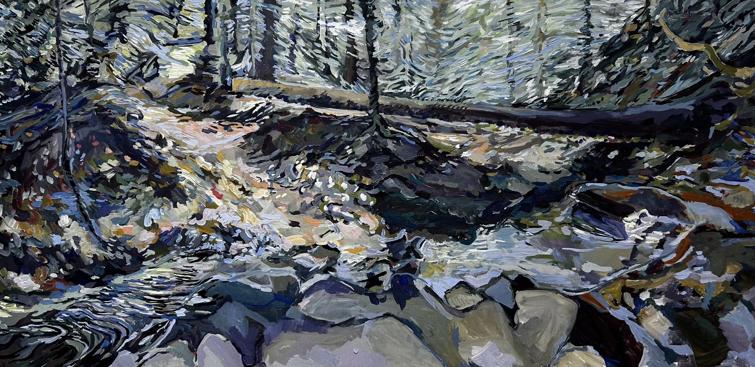 This exhibit is a collection of my work from the last three years. I continue to hike in the Kanawha State Forest and use it as a place of refuge during stressful times. My favorite moments are in the early spring when I can rest in the sun and it feels like the first time I have ever been warm. I think it is the artist’s job to reflect experiences of the world back to others in order for them to gain a sense of connection. In my case nature is a reliable companion and source of healing. It deserves reverence and protection and the chance to renew itself.