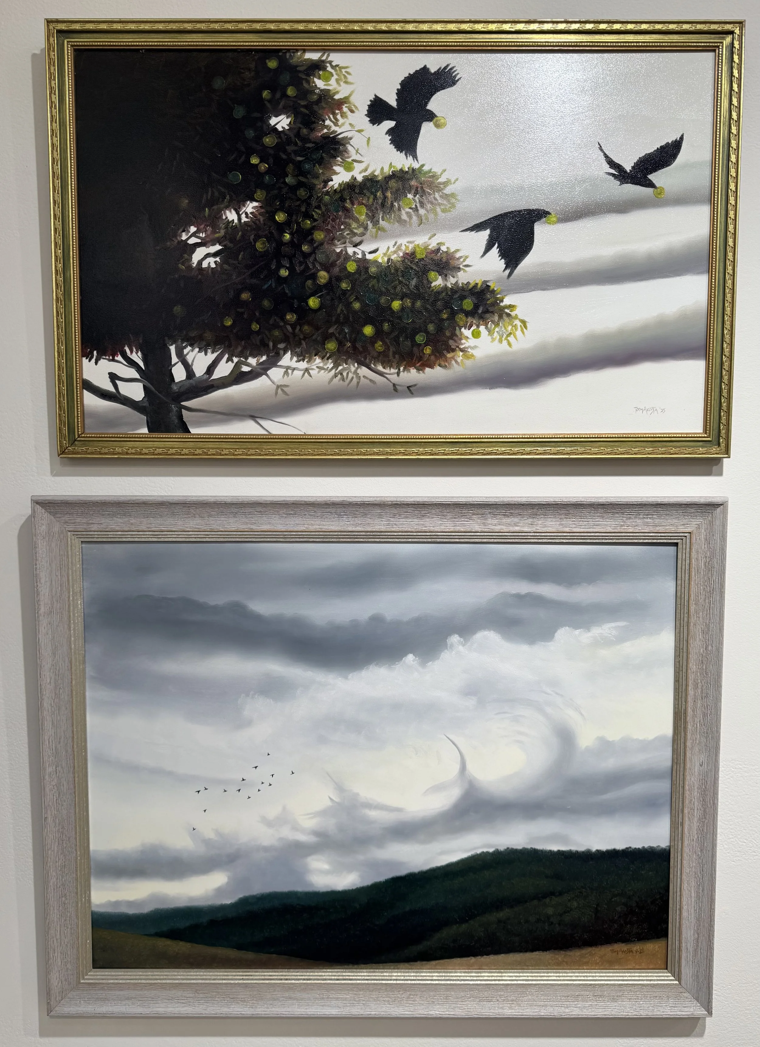 Though his early work has a nostalgic, Rockwellish feel to it- as if Acosta were trying to recreate for himself the mythical American childhood that he never had- as it has evolved, a starkness and severity has emerged, aligning it more closely with such giants as Andrew Wyeth and Winslow Homer. “I’m drawn to the seasons of fall and winter, when everything’s dead,” says Acosta. In his home, he is able to hone in on his life themes; Heritage of the coalfields; Historical architecture of the state of West Virginia; and Mythical journey of his own life - among them, the omnipresence of God and the reality of death, two themes that are often not played out in austere, rural landscapes. Each day presents a potential to be filled - - a purpose to paint.